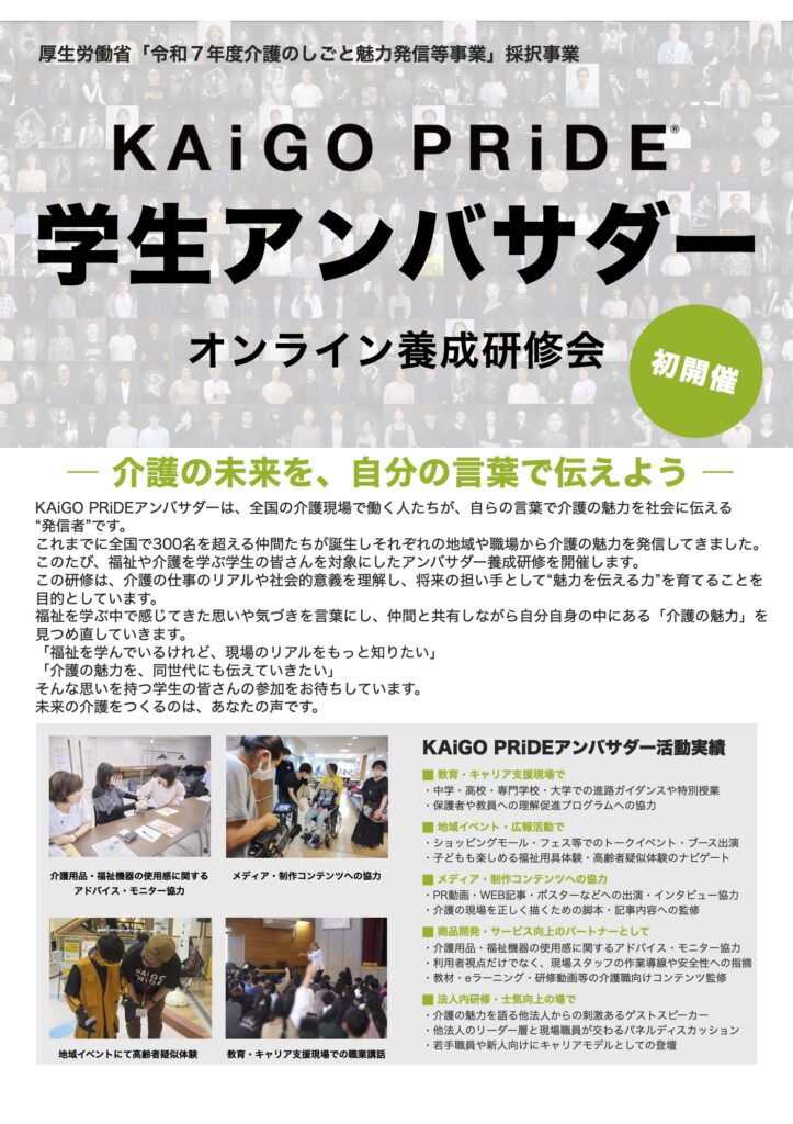 厚生労働省「令和7年度 介護のしごと魅力発信等事業」採択事業として、今年度は学生向けに初開催します。